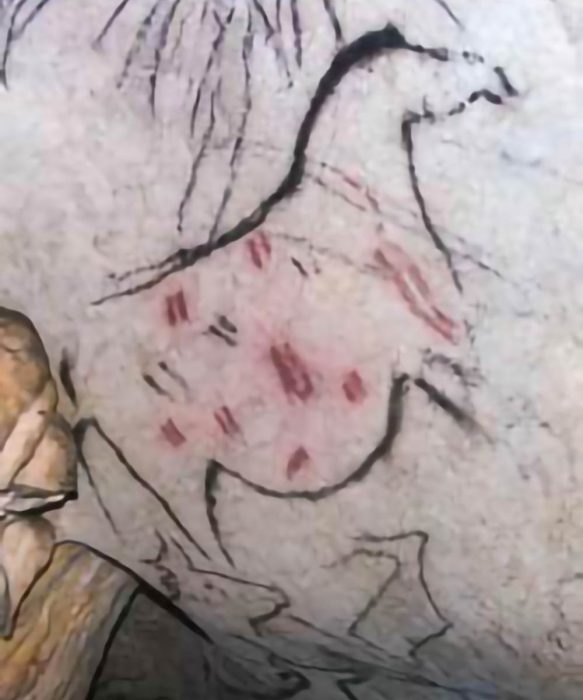 También se conservan muchas grafías de trazos cortos y especialmente arte paleolítico figurativo que representan animales: caballos, toros, cabras, el gran pez, la famosa yegua preñada, ciervos, etc…