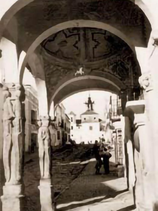 Data de 1734. Se trata de una capilla abierta, adosada a una vivienda, de planta rectangular abierta, con arcos de medio punto y carpaneles en tres de sus lados, que se apoyan en unas columnas de capiteles jónicos y fustes figurativos, que representan figuras humanas delgadas, atadas al fuste con una soga alrededor de sus cuellos, de expresión siniestra.